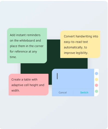 Beyaz tahta üzerine hızlı ve pratik küçük hatırlatmalar ekleyin, dilediğiniz zaman kolayca yeniden başvurmak üzere köşede tutun.