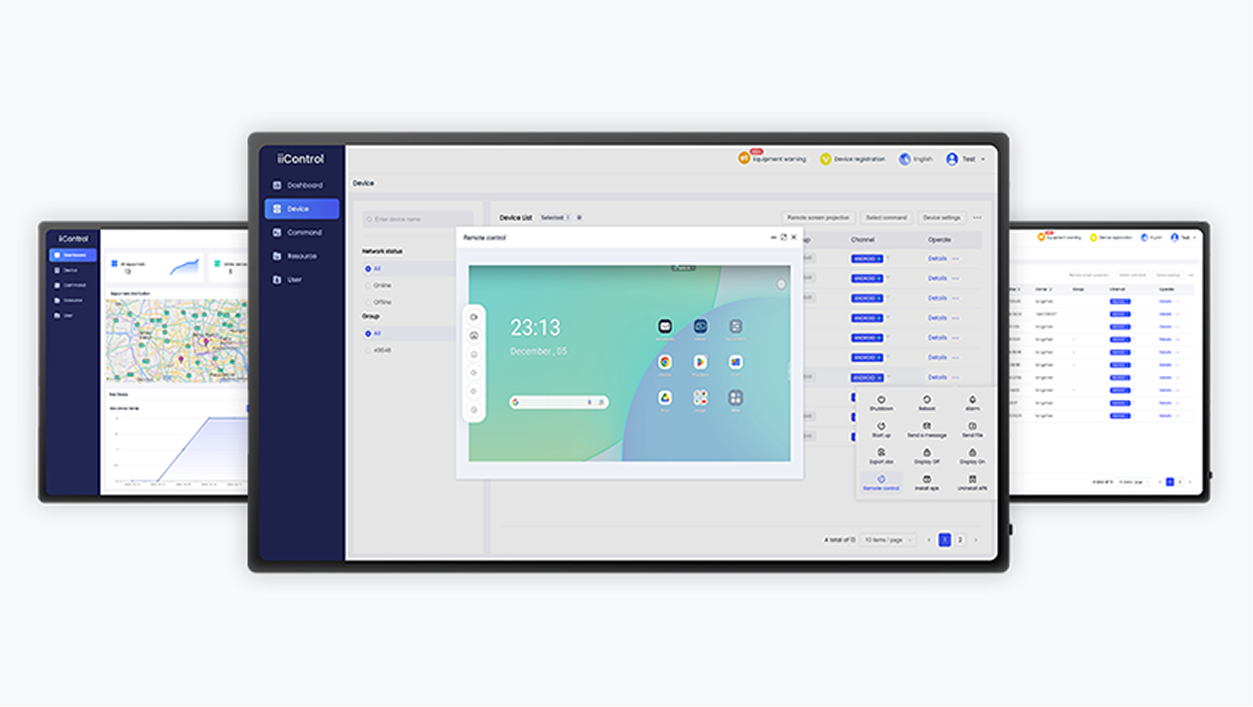 iiControl, kuruluşlara uç cihazlar için pratik ve hızlı bir merkezi yönetim çözümü sunar; verimli ve gerçek zamanlı bir ekipman yönetim sistemi oluşturur. Kampüs veya ofis ortamının dijitalleşmesine yardımcı olur ve cihaz yönetimini son derece kolay hale getirir. iiyama DMS, GDPR (Genel Veri Koruma Yönetmeliği) uyumluluğunu sürdürmeye kararlıdır.