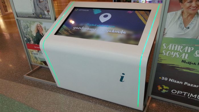 İzmir’ de bulunan Optimum AVM, wayfinding ve digital signage projesi tamamlandı. Mevcut binaya ek olarak yapılan yeni binaya iç mekan ve dış mekan olarak bir çok özel tasarım kiosk ve totem konumlandırıldı. İç mimariye uygun olarak dizayn edilen kiosk ve totemler AVM’ nin farklı bölgelerinde reklam ve yön bulma olarak kullanılmaktadır. Proje ile ilgili galeriyi görüntülemek…